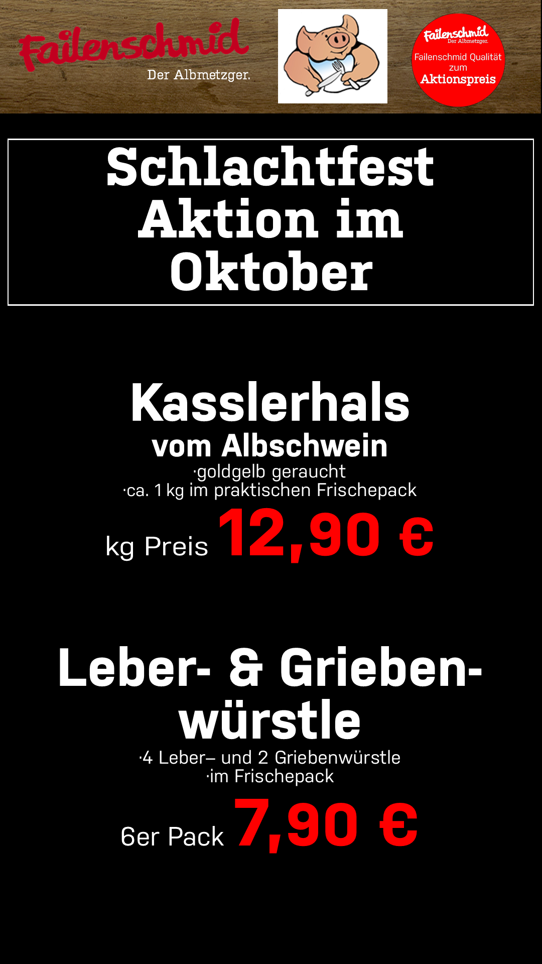 Schlachtfest im Oktober. Nur diesen Monat zum Top-Preis. Schnell sichern, solange der Vorrat reicht!